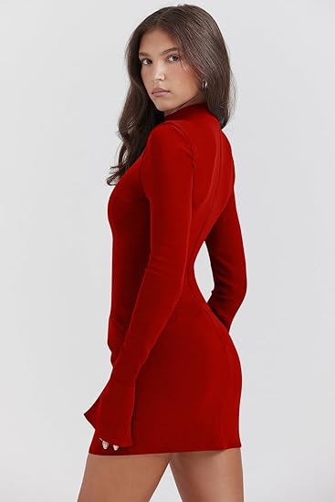 Gör ett starkt intryck med denna rödpolerade, figursydda mini-klänning. Med en elegant polokrage och långa ärmar är denna klänning perfekt för kvällsarrangemang, fester eller middagar. Den kroppsnära designen och minimalistiska detaljerna framhäver din siluett och skapar en sofistikerad look som är både modern och klassisk.